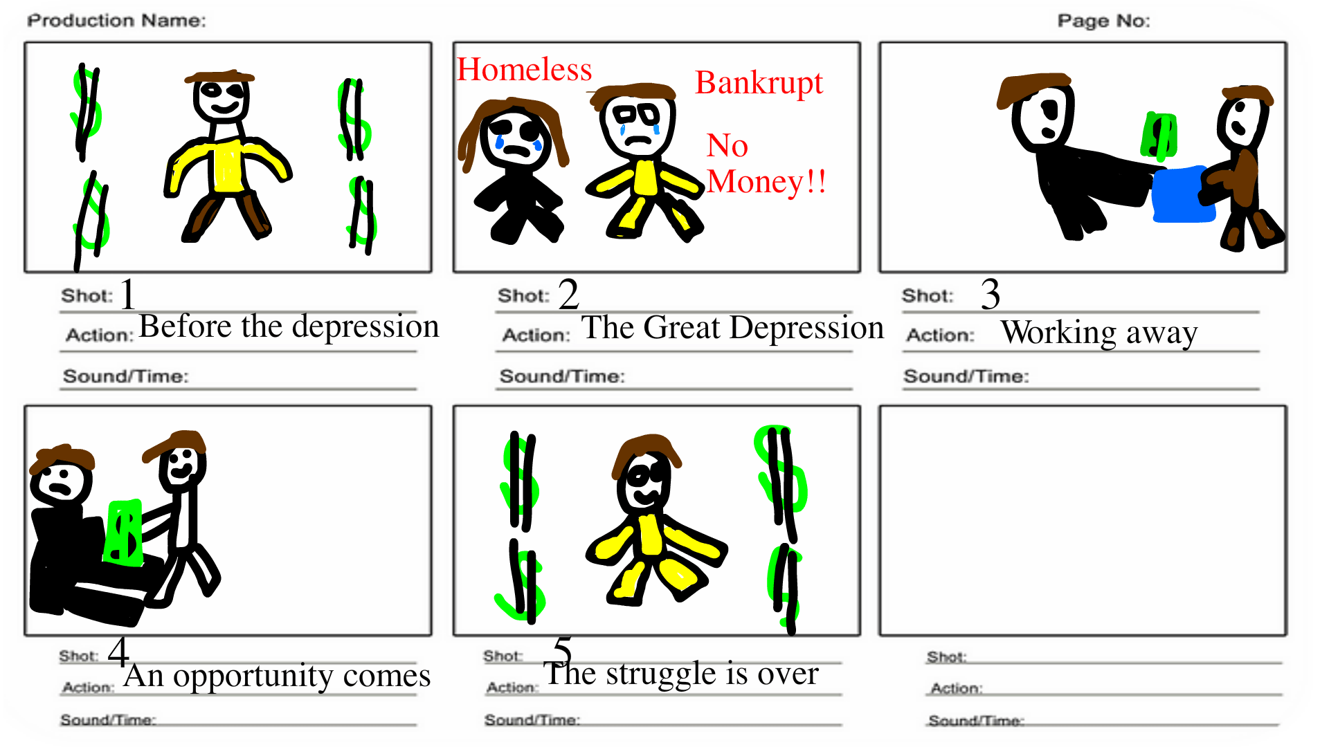 - Black screen reading “ October 29th, 1929. The start of the great depression”